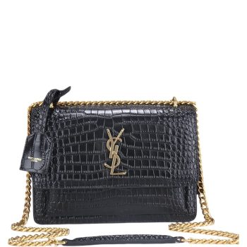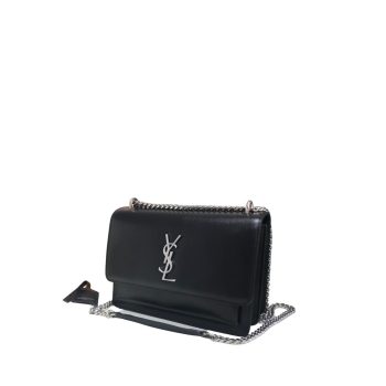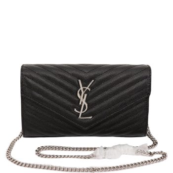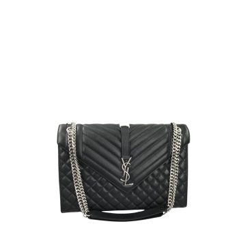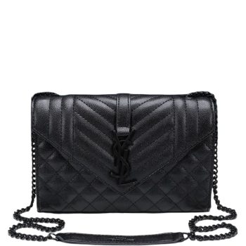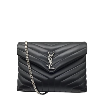 SAINT LAURENT LOULOU SMALL CHAIN BAG IN MATELASSE Y BLACK NOIR 23CM