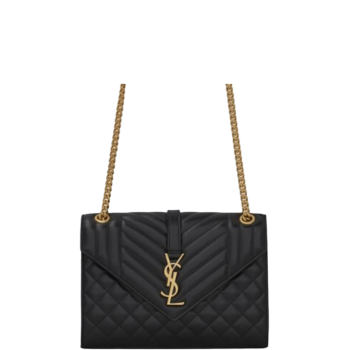 SAINT LAURENT LOULOU SMALL CHAIN BAG IN MATELASSE Y BLACK GOLD 23CM