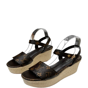 LOUIS VUITTON BLACK AND BROWN WOMEN’S STARBOARD WEDGE SANDAL $410.00Select options