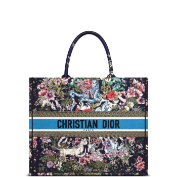 DIOR MEDIUM 36CM BLUE OBLIQUE EMBROIDERY BOOK TOTE