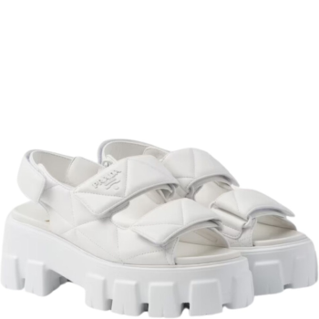PRADA WHITE MONOLITH NAPPA SANDALS $350.00Select options
