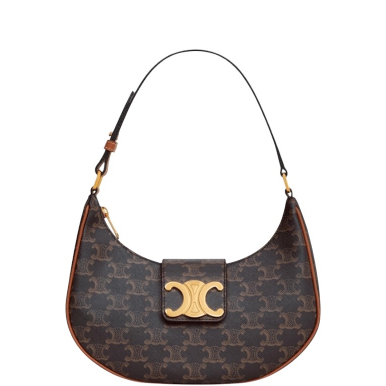 CELINE AVA TRIOMPHE SOFT BAG IN CANVAS AND CALFSKIN TAN