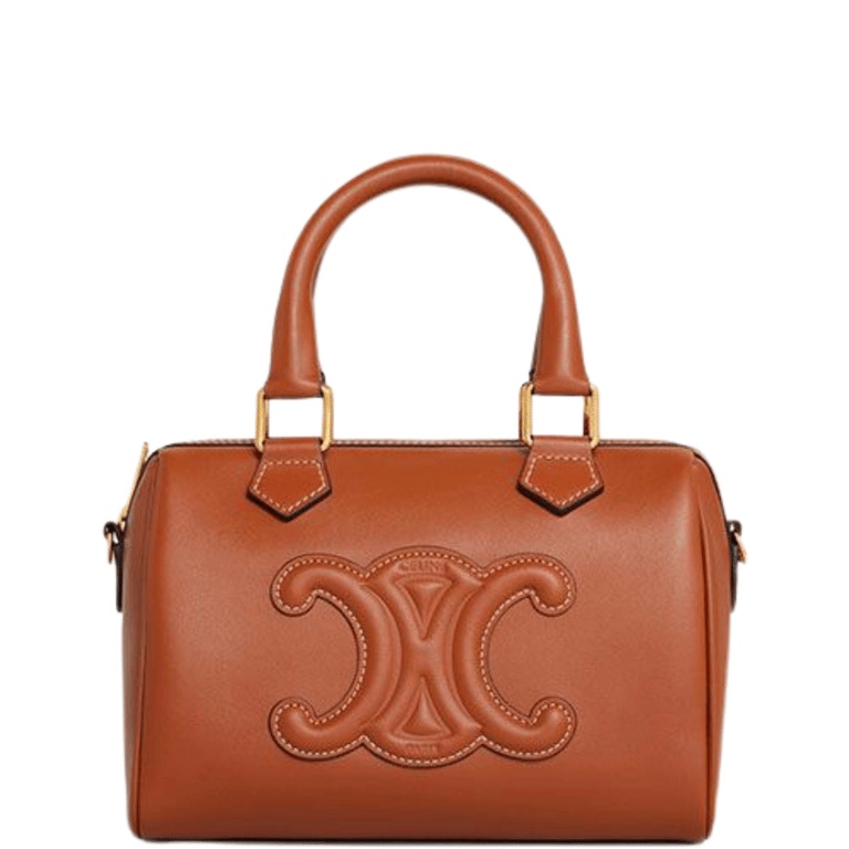CELINE SMALL BOSTON BAG IN SMOOTH CALFSKIN WITH CUIR TRIOMPHE BROWN