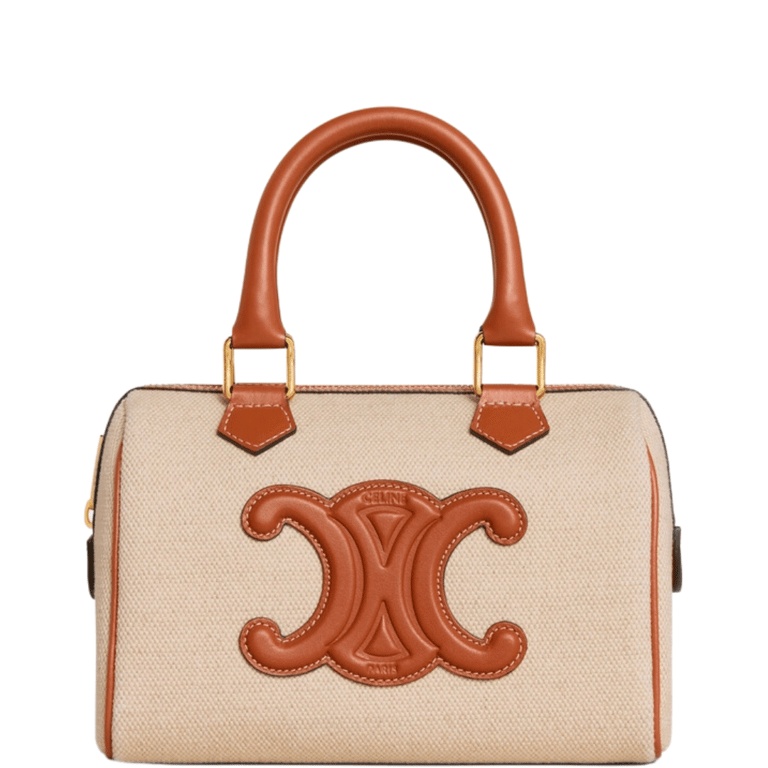 CELINE SMALL BOSTON CUIR TRIOMPHE IN TEXTILE AND CALFSKIN TAN