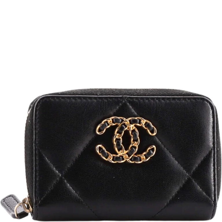CHANEL 19 CARD HOLDER WITH ZIPPER LEATHER BLACK WALLET