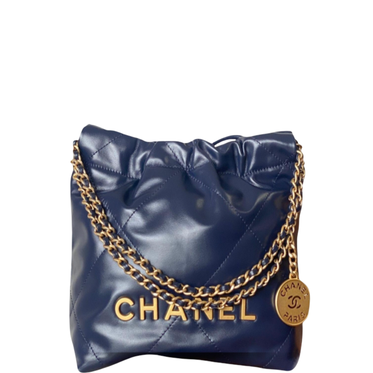 CHANEL 22 MINI BAG GOLD TONE NAVY BLUE 7.5IN/19CM