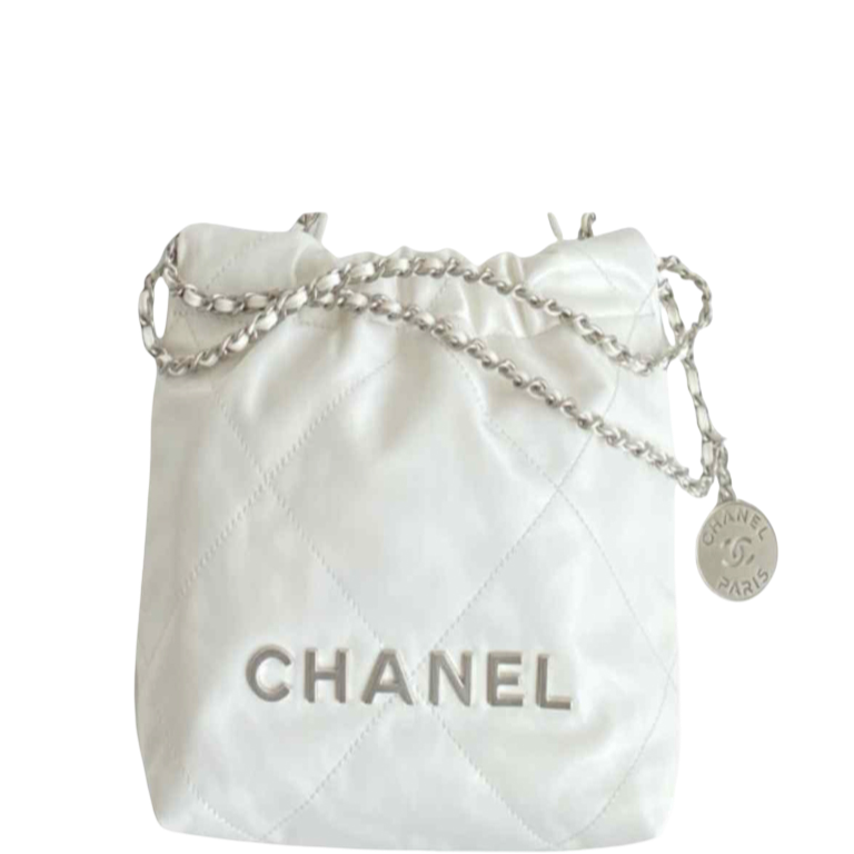 CHANEL 22 MINI BAG SILVER TONE WHITE 7,1IN/18CM