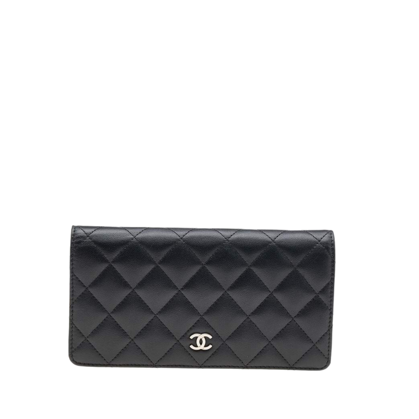 CHANEL BLACK QUILTED LAMBSKIN CLASSIC LONG FLAP WITH SILVER HARDWARE WALLET 19.5CM