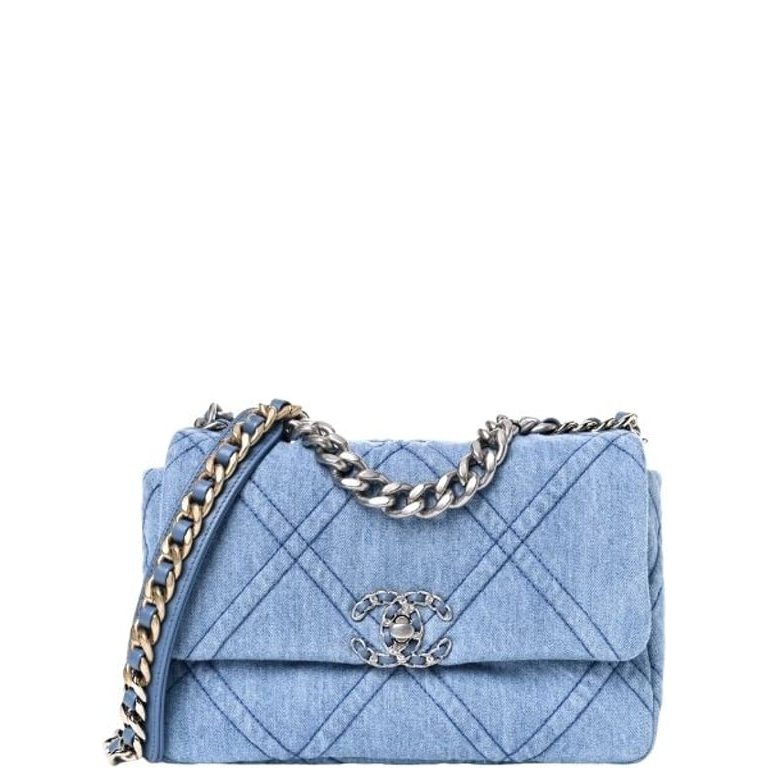 CHANEL 19 HANDBAG DENIM BLUE FOR WOMEN 10.1IN/26CM