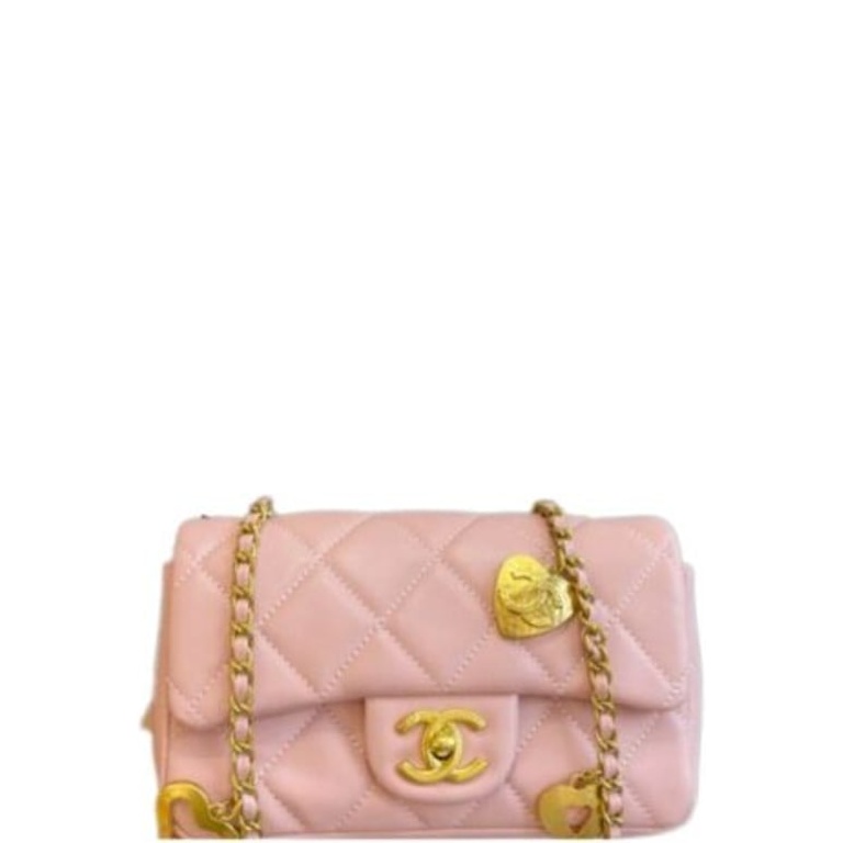 CHANEL FLAP BAG WITH HEART CC CHARM PINK 20CM