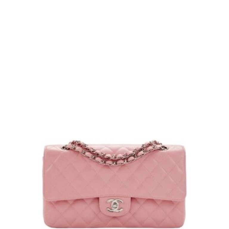 CHANEL MEDIUM CLASSIC FLAP BAG SILVER HARDWARE PINK 25CM