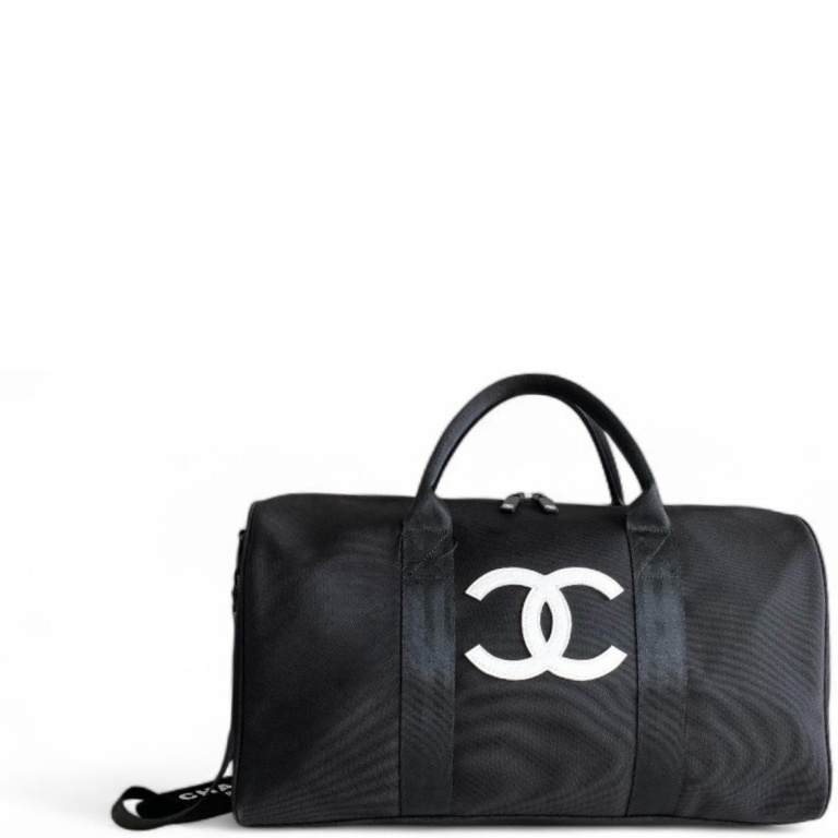 CHANEL BLACK CC LOGO NOVELTY BOSTON TRAVEL BAG