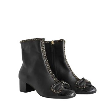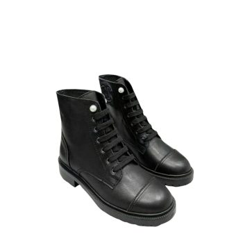 CHANEL QUILTED CHAIN LACE UP COMBAT BOOTS BLACK