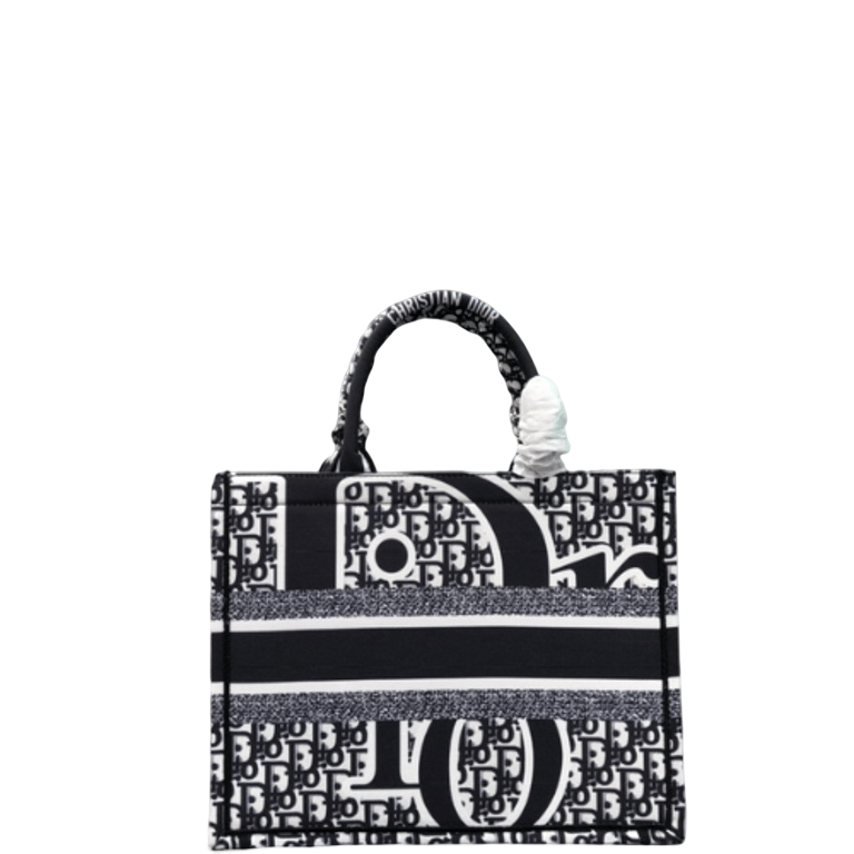 DIOR LARGE BOOK TOTE CORNFLOWER OBLIQUE EMBROIDERY BLACK 42CM
