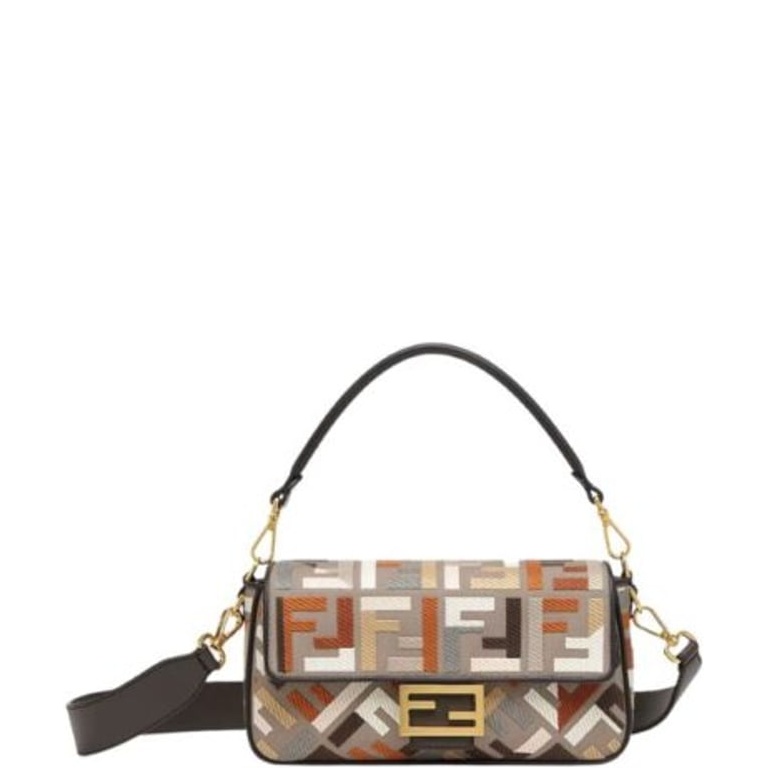 FENDI BAGUETTE MULTICOLOR CANVAS BAG WITH FF EMBROIDERY 25CM 8BR600ANH4F1MQL