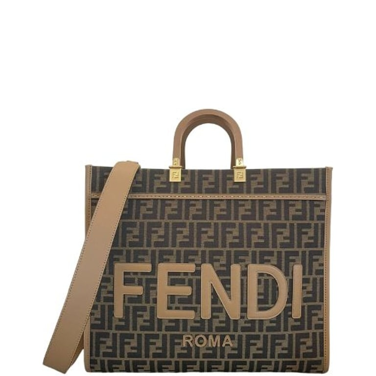 FENDI 40CM HIGH QUALITY SUNSHINE LARGE LIGHT BROWN JACQUARD FABRIC SHOPPER