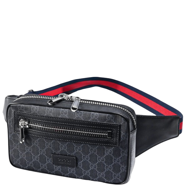 A small pouch made from incredibly malleable soft GG Supreme. The adjustable waist strap features the House Web stripe in blue and red.