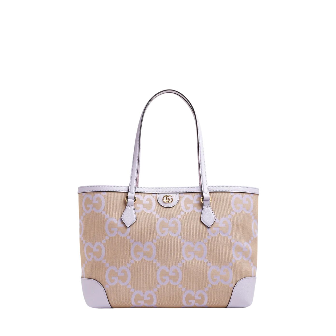 GUCCI BEIGE AND PURPLE OPHIDIA JUMBO MEDIUM TOTE 38CM