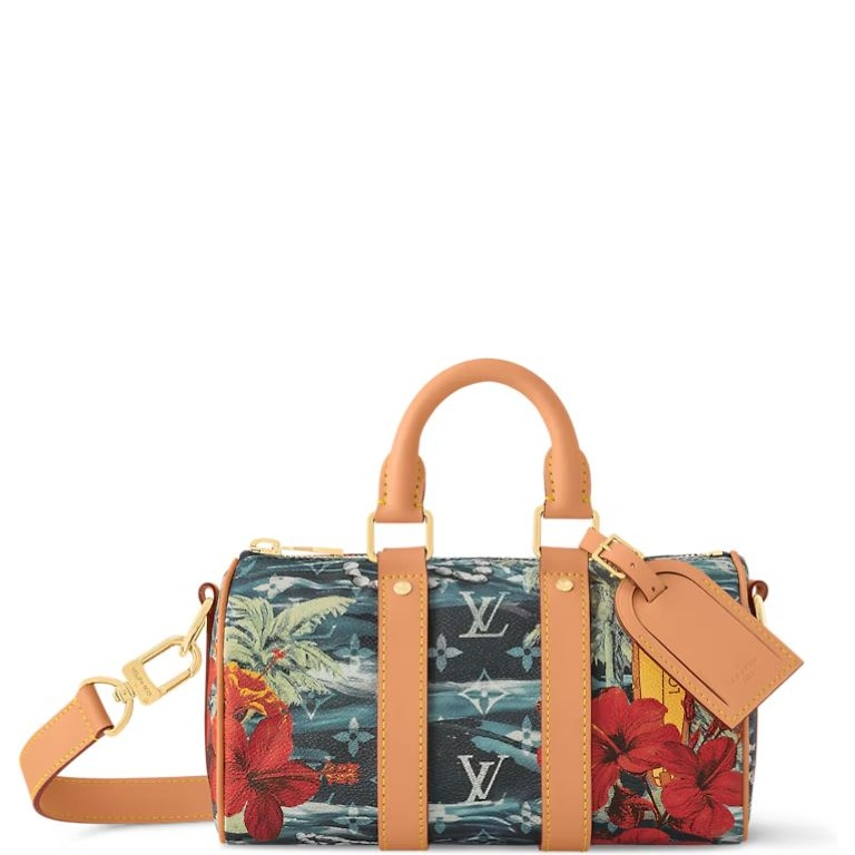 Meet the Keepall Bandoulière 25, a smaller, stylish version of Louis Vuitton’s famous travel bag! Its cool tropical print gives it a lovely vintage feel.