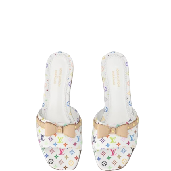 Chic and cheerful, the 6AM flat mule is signed all over with the iconic Monogram motif in upbeat rainbow tones as part of the re-edition of the Louis Vuitton x Murakami collection, which reimagines the House’s timeless signature with Japanese artist Takashi Murakami’s renowned vibrant aesthetic. The strap is detailed with studded bands and trimmed with bows for a final flourish.