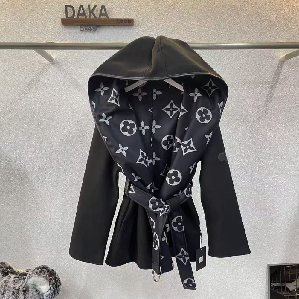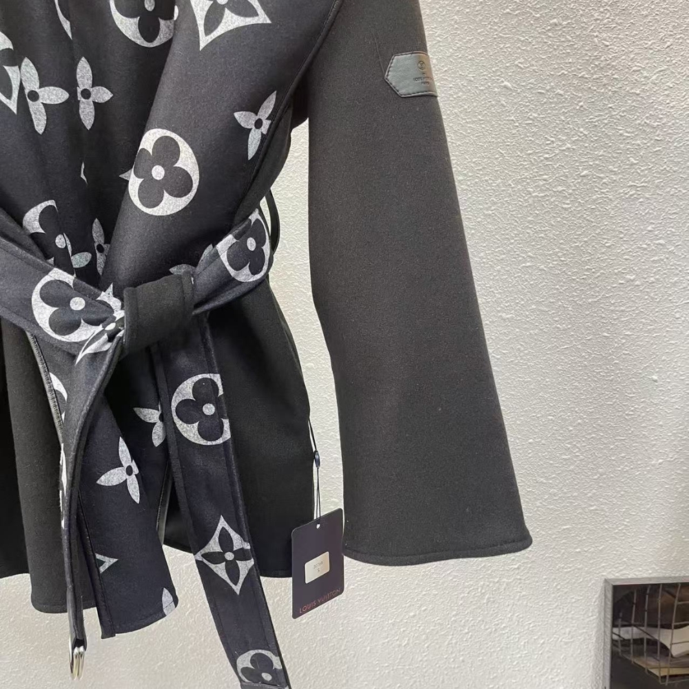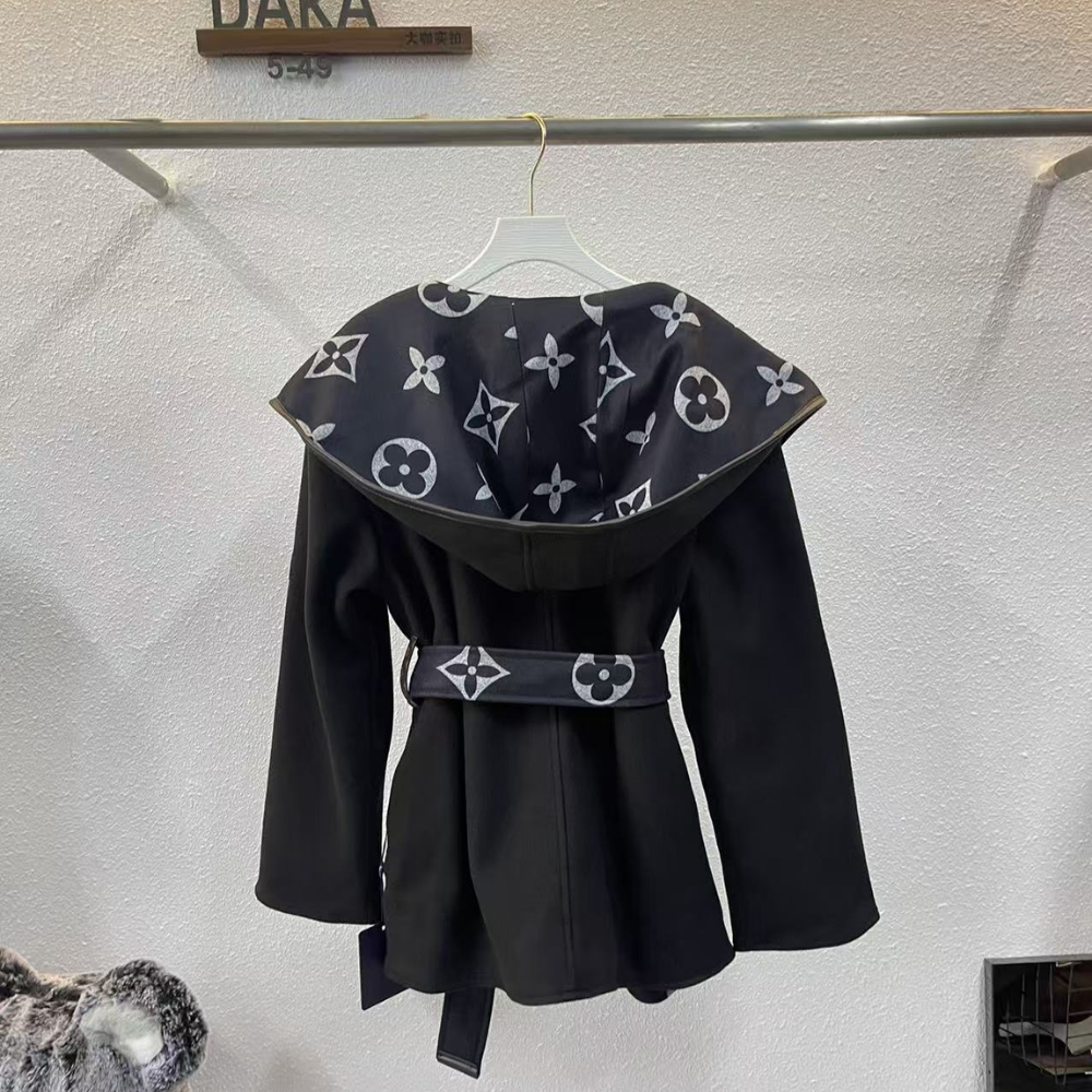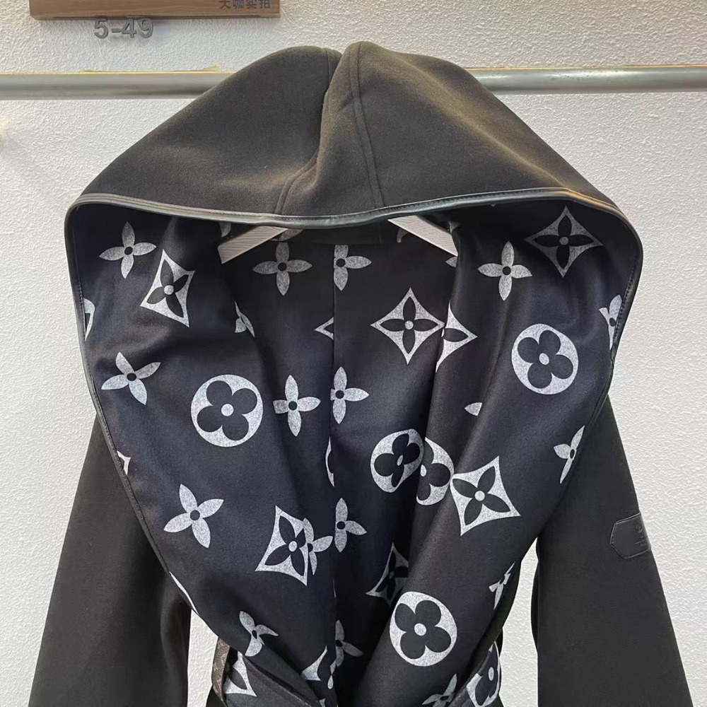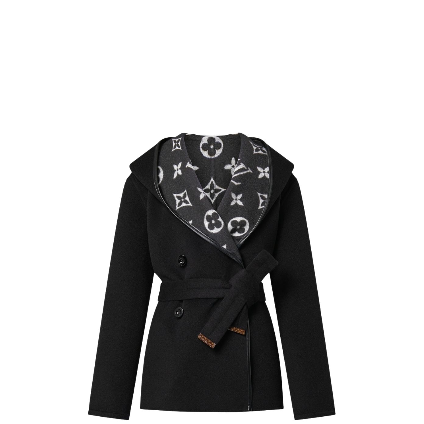 LOUIS VUITTON SIGNATURE SHORT HOODED WRAP COAT BLACK