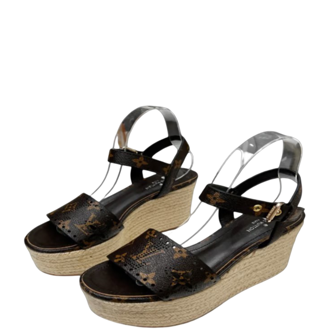 LOUIS VUITTON BLACK AND BROWN WOMEN’S STARBOARD WEDGE SANDAL