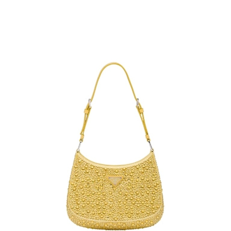 PRADA CLEO SATIN BAG WITH CRYSTALS YELLOW 1BC169 2AWL F068X V HOO