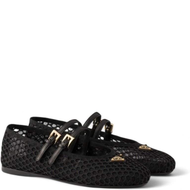 PRADA BLACK MESH FABRIC BALLERINAS