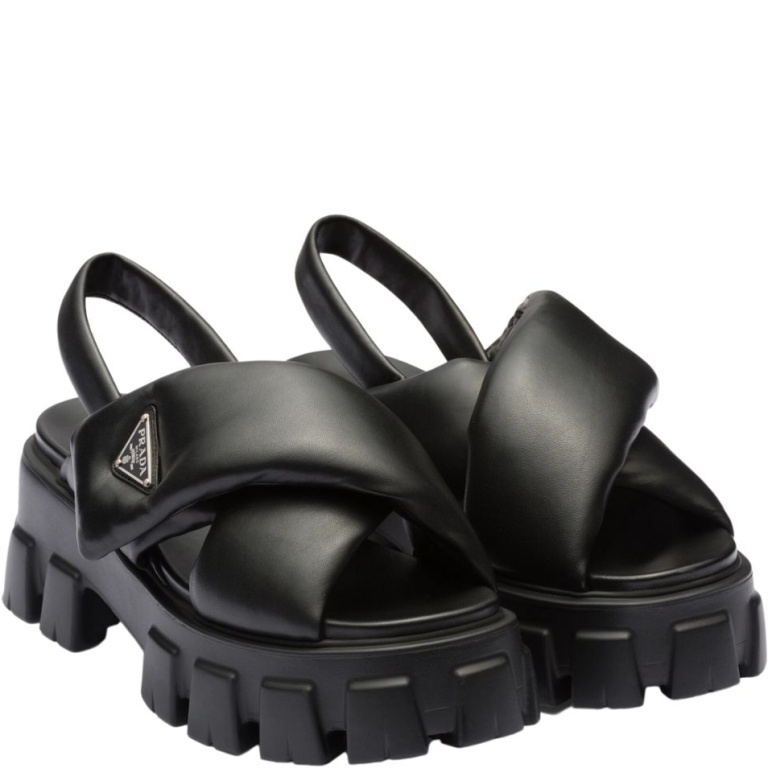 PRADA MONOLITH PADDED NAPPA LEATHER SANDALS