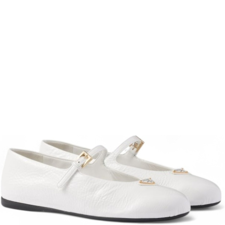 PRADA WHITE PATENT LEATHER BALLERINAS