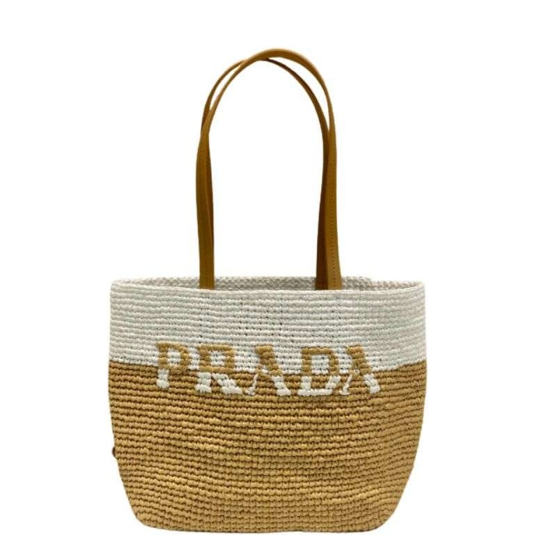 PRADA BAG BEIGE RAFFIA TOTE 9.1IN/23CM