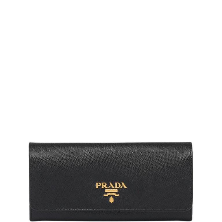PRADA SAFFIANO LEATHER FLAP LONG WALLET BLACK AND GOLD 19CM 1MH132 ZLP F061H