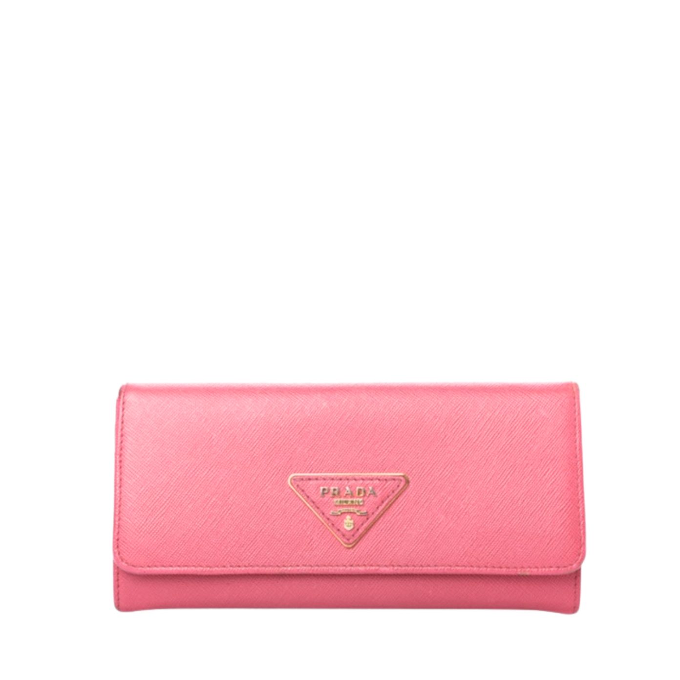 PRADA SAFFIANO LUX LEATHER FLAP CONTINENTAL LIGHT PINK WALLET 19CM