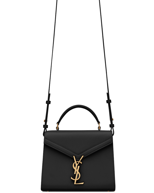 SAINT LAURENT CASSANDRA MEDIUM TOP HANDLE IN GRAIN DE POUDRE EMBOSSED FOG LEATHER 24CM