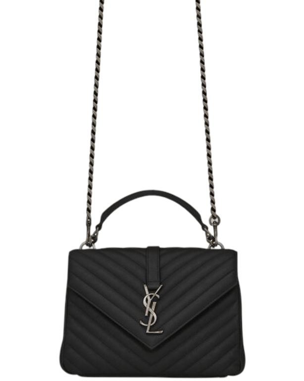 SAINT LAURENT COLLEGE MEDIUM SILVER CHAIN IN QUILTED BLACK SILVER 24CM