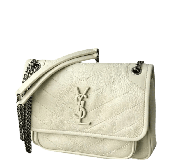 SAINT LAURENT NIKI VINTAGE LEATHER CHAIN WALLET CREAM 19CM