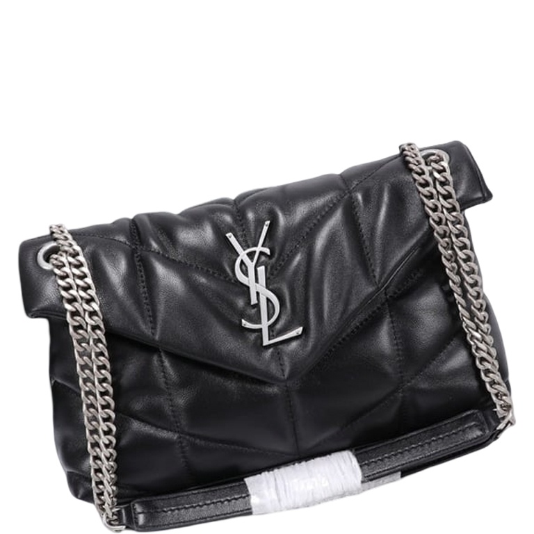 - SAINT LAURENT’S PUFFER SMALL CHAIN BAG IN QUILTED LAMBSKIN BLACK SILVER